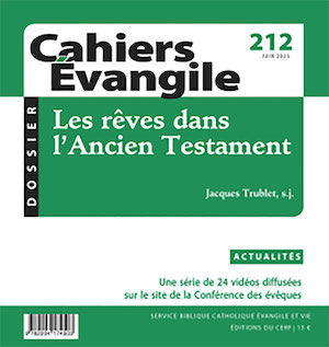 Cahiers Évangile n° 212 Editions: Paris: Cerf, 2025 Résumé: A plusieurs reprises dans le récit biblique, Dieu s'adresse à différents personnages par l'intermédiaire d'un rêve ou d'un songe. Qu'est-ce que cela apporte au récit ? Comment cela caractérise-t-il la révélation elle-même ? Auteur : Jacques Trublet, s.j. Au sommaire de ce numéro de juin 2025 : Éditorial Dossier : Liminaire Les rêves en général et dans la Bible - Les mots et les réalités - Le sommeil et le rêve apport des neurosciences - Le phénomène du rêve et le récit de rêve - Le statut du rêve dans la Bible - Classification des rêves Etudes de rêves, I : Les rêves porteurs de messages ou de symboles - Les rêves messages - Les rêves symboliques Etudes de rêves, II : Les rêves dans le livre de Daniel - Le rêve de Nabuchodonosor (Dn 2) - Le grand arbre : Dn 3, 31 - 4, 34 - La vision du fils de l'homme, Dn 7 - Fonction du rêve Etudes de rêves, III : Songes visuels et auditifs - Le rêve de Mardochée dans le livre d'Esther - Le rêve de Jacob (Gn 28) - Le songe de Jacob chez Laban (Gn 31, 10-13) En guide d'ouverture Les textes du magistère - Le chapitre 4 de Dei Verbum, par Béatrice Oiry Actualités - Une série de 24 vidéos diffusées sur le site de la Conférence des évêques, par Mgr Jean-Luc Garin. - Des livres - Brèves |