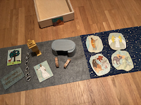 Godly Play Editions: Peseux ; Jurmala (Lettonie): Centre oecuménique de documentation (COD) ; Godly Play Matérials, 2026 Résumé: Cette leçon développe la leçon de L’Exil et le Retour (Volume 2, Leçon 12). Tout désespoir, comme celui du peuple en exil, est difficile à affronter directement. Les histoires des chapitres 1 à 6 du livre de Daniel et les visions apocalyptiques des chapitres 7 à 12 sont des façons de présenter indirectement et symboliquement tout un système de sens, qui permet de nommer le désespoir refoulé et de remettre en question les faux objectifs de la société. La boîte contient : - 1 boîte en bois avec l'icône d'un lion - 1 lourde chaîne de 25 cm - 1 plaque en bois illustrant une statue brillante - 1 plaque en bois illustrant un grand arbre couvert de fruits et entouré d’animaux de toutes sortes - 1 plaque en bois illustrant un mur de pierres grises où figurent les mots « Mené, Mené, Téqel, Ou-Parsîn » en hébreu - 1 statue dorée - 1 fosse aux lions - 2 lions en bois - 1 plaque en bois représentant les quatre bêtes - 1 plaque en bois représentant le bélier et le bouc - 1 plaque en bois représentant l'ange Gabriel - 1 plaque en bois représentant l’homme aux vêtements de lin - 1 fond de feutrine grise cousue à un tissu étoilé - 1 carte contrôle (image des objets disposés dans le bon ordre). Réservé aux personnes qui ont suivi la formation Godly Play. |