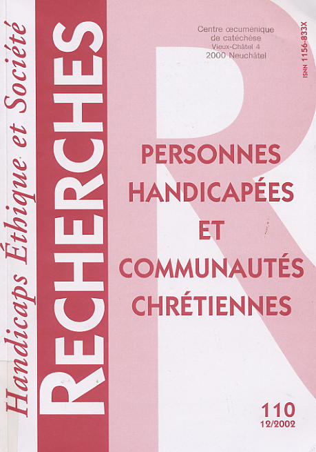 Recherches (Handicaps, éthique et société) n° 110 Editions: Paris: Conscience Chrétienne et Handicap, 2002 Résumé: Cette revue est divisée en trois parties: 1. Faire communauté, un chantier permanent 2. Eclairage anthropologique et approche éthique 3. Perspective théologique est pastorale |