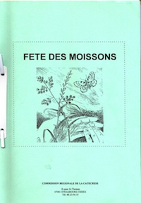 Editions: Strasbourg: Commission Régionale de la Catéchèse, Résumé: Animation catéchétique, temps forts, journée, week-end, culte Fête des moissons, Dieu fait vivre (genèse 1 à 2,4a) Notes pédagogiques, bibliques, catéchétiques et propositions de célébration. Fiche technique 1 : le culte des moissons Fiche technique 2 : les crayons de couleur et leur boîte Fiche technique 3 : la création d'après Genèse 1 Fiche technique 4 : expression corporelle : la terre est informe et vide |