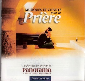 Editions: Paris: Bayard Musique, 2010 Résumé: Au printemps 2009, les lecteurs de la revue Panorama, le mensuel chrétien de spiritualité, ont été invités à choisir les 3 chants et les 3 musiques qui les aident à prier. Ce double CD est le résultat de ce "sondage" totalement ouvert. Il propose 2 chemins de prière, l’un autour de la musique méditative (orgue, guitare, violoncelle...), l’autre autour de chants couramment utilisés pour la prière. Liste des morceaux: CD 1 - Les musiques : 1- Chaconne en mi mineur, D. Buxtehude (4'42) 2- Prélude de la Suite No. 1 pour violoncelle, J-S Bach (3'04) 4- Sinfonia de la Cantate BWV 156, J-S Bach (2'49) 5- Choral "Nous croyons en un seul Dieu", J-S Bach (4'44) 6- Cantate "Jésus que ma joie demeure", J-S Bach (4'24) 7- Ave Maria, G. Caccini (4'33) 8- Sarabande, G.F. Haendel (5'06) 9- Alleluia tiré de Le Messie , G.F Haendel (3'44) 10 à 13- Exultate Jubilate, W.A. Mozart (14'21) 14- Sonates d'Eglise, Allegro, W.A. Mozart (4'31) 15- Méditation, Ave Maria, F. Schubert (2'44) 16- Panis Angelicus, C. Franck (3'30) 17- Ave Maria, c. Gounod (2'57) 18- En prière, G Fauré (2'15) |