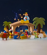 Editions: Brugg: Bea Verlag, 2012 Résumé: Crèche en bois. Pour raconter l'histoire de Noël ou simplement pour décorer lors d'une célébration avec les enfants. La boîte contient 16 pièces: une étable, Marie, Joseph, Jésus, une mangeoire, un ange, un berger, deux moutons, un âne, un chameau, trois mages, deux palmiers. Grandeur de l'étable: 23 x 11 x 15 cm. |