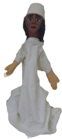 Marionnette homme robe blanche, chapeau blanc