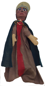 Marionnette homme roi - robe brune, grande raye rouge sur le devant