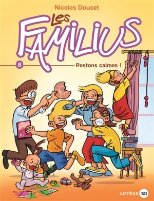 Les Familius n° 8 Editions: Perpignan: Artège, 2016 Résumé: Pour les 10 ans des aventures humoristiques et mouvementées des Familius, on retrouve avec joie Toinette, Oscar, Bertille et Symphorien, et leurs parents. Chez vous aussi les odeurs de pieds d'Oscar rentrant du foot sont comparables à un reblochon bien fait ? Chez vous aussi Symphorien pour son premier anniversaire n'a le temps ni de souffler sa bougie, ni d'ouvrir ses cadeaux grâce à « l'extrême » gentillesse de ses frères et sœurs dévoués ? Chez vous aussi Bertille réussit bien mieux à compter et additionner les frites qu'elle aurait dû avoir au déjeuner qu'à faire du calcul mental pour ses devoirs ? Alors… restez calmes et détendez-vous en famille en lisant cette bonne série de gags et d'histoires du quotidien pour ce père bricoleur, cette mère dévouée et leurs quatre enfants si vivants et attachants ! Dès 7 ans. |