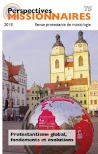 Perspectives missionnaires n° 75 Editions: Paris ; Lausanne: Association Perspectives missionnaires, 2018 Résumé: Dossier : Protestantisme global - Ouverture - Les différents protestantismes au Rwanda, Zambie, Cameroun - Les rapports avec les autres confessions et religions au Cameroun, Mexique, Iran - La contribution du protestantisme à la vie de la société au Burkina Faso, au Cameroun, au Bénin - Postlude : écho d'un voyage aux racines du protestantisme, aux sources du piétisme outre-mer. La figure de Martin Luther au nord et au sud - Lectures |