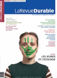 La Revue durable n° 67 Editions: Fribourg: Artisans de la Transition, 2022 Résumé: Printemps-été 2022 Ce dossier propose des pistes pour aider les jeunes à transformer leur détresse en espoir. D’abord parler, en famille ou à l’école, pour explorer leurs sentiments. La Finlande et la Nouvelle-Zélande sont des pays pionniers dans la formation des enseignants à cette pratique. Ensuite créer des opportunités pour agir au quotidien. C’est ce que fait le Gymnase d’Yverdon, dont le directeur et le responsable durabilité s’expriment dans ce numéro. Montrer aussi aux jeunes qu’ils ne sont pas seuls à agir. C’est ce que fait le Prix Nobel Jacques Dubochet, qui témoigne dans ce numéro sur son soutien aux jeunes sur l’écologie. Dans ce numéro, la grande interview donne en outre la parole à L’Atelier Paysan qui veut installer un million de paysans en France en dix ans et donner accès au plus grand nombre à une nourriture de qualité. Et le minidossier présente le Traité de non-prolifération des énergies fossiles dont l’objectif est d’orchestrer, à l’échelle internationale, le rapide déclin de la production des énergies fossiles. Au sommaire : - Le signe d’une vitalité - Bilan des conférences sur les circuits courts alimentaires collectifs - Appel à témoignages - Brèves sur le climat - Rencontre avec L’atelier paysan : créer un puissant mouvement social appuyé sur l’alimentation - Editorial du dossier N°67 Les jeunes et l'écologie - Brèves sur la guerre et autres désastres - Un traité mondial pour laisser les énergies fossiles sous terre - La vie désire la vie - Indicateurs sur les jeunes et l'écologie - Sur le climat, les jeunes se distinguent peu des autres groupes d’âge - Les répertoires d’actions de jeunes Vaudois - Chez les jeunes, les femmes sont plus enclines à agir pour l’environnement. - Rencontre avec Jacques Dubochet, l’ami des jeunes - Détruire le climat détruit aussi les enfants - Aider les enfants et les jeunes à transformer leurs émotions en espoir. - La famille, tremplin privilégié pour l’action climatique - Le Gymnase d’Yverdon, laboratoire de la durabilité. Rencontre avec Christian Henchoz - Guide sur les jeunes et l’écologie |