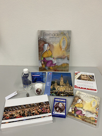Editions: [s.i.]: Pèlerinage à Notre-Dame de Lourdes, 2023 Résumé: Cette valise a été faite pour marquer les 100 ans de pèlerinage depuis la Suisse romande à Lourdes. Cette valise contient : 1. le titre en version plastifiée 2. Bernadette, l'enfant qui a vu (livre pour enfant) 3. Bernadette 'enfant qui a vu (DVD pour enfants) 4. Lourdes : Bernadette, Apparitions, Message, Nevers, Sanctuaires, Pèlerinage (livre) 5. Allons boire à la source : pèlerinage de printemps de la Suisse romande à Lourdes (livre) 6. Je m'appelle Bernadette (DVD) 7. Bernadette de Lourdes, le spectacle musical (CD) 8. Jeu des 7 familles (jeu de cartes) 9. Un bouteille d'eau de Lourdes 10. Un lumignon de Lourdes 11. 1 clé USB "Lourdes" 12. Belle découverte (lettre) Une séquence catéchétique est en cours d'élaboration. |