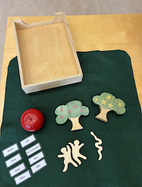 Godly Play Editions: Peseux: Centre oecuménique de documentation (COD), 2025 Résumé: Leçon d’extension – à utiliser une fois que les enfants sont à l’aise avec la leçon de base intitulée La Création (Manuel complet Godly Play, Volume 2, Leçon 5). Les histoires racontées dans le Manuel complet Godly Play, Volume 6 prolongent les récits de base du Volume 2, qui racontent comment le Peuple de Dieu a rencontré la présence insaisissable de Dieu. Ce deuxième récit de la Création (Genèse 2.4 – 3.24) raconte l’histoire d’Adam-Ève et comment ils se sont « éloignés » de Dieu, l’un de l’autre, de la Création de Dieu, et de l’image de Dieu dans leur être profond. Nous apprenons comment ces relations ont été restaurées. Ce récit met en avant l’amour de Dieu pour la Création et ses créatures, ainsi que le pouvoir rédempteur de son amour et de sa force créatrice. Dieu n’abandonne jamais le Peuple de Dieu. Contenu de la boîte : - 1 boîte en bois - 1 fond de feutrine verte de 45 x 45 cm - 1 arbre avec des "pommes" - 1 arbre avec des étoiles - 1 figurine d'Eve - 1 figurine d'Adam - 1 serpent - 1 boîte en forme de pomme contenant : - 10 étiquettes plastifiées des différences - Le texte du récit Réservé aux personnes qui ont suivi la formation Godly Play. |